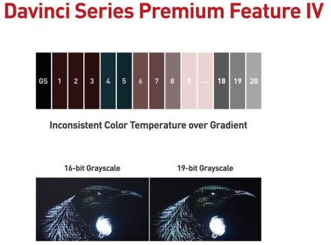 3) The function of PAM+PWM〡19-bit Grayscale solves the problem of color shift: When the LED display is at low brightness, the LED is not fully turned on, so there is a significant difference in color temperature, compared to high brightness. The 19-bit PWM dimming engine of Macroblock solves this problem and provides high contrast effects and low-brightness display without color shift.
