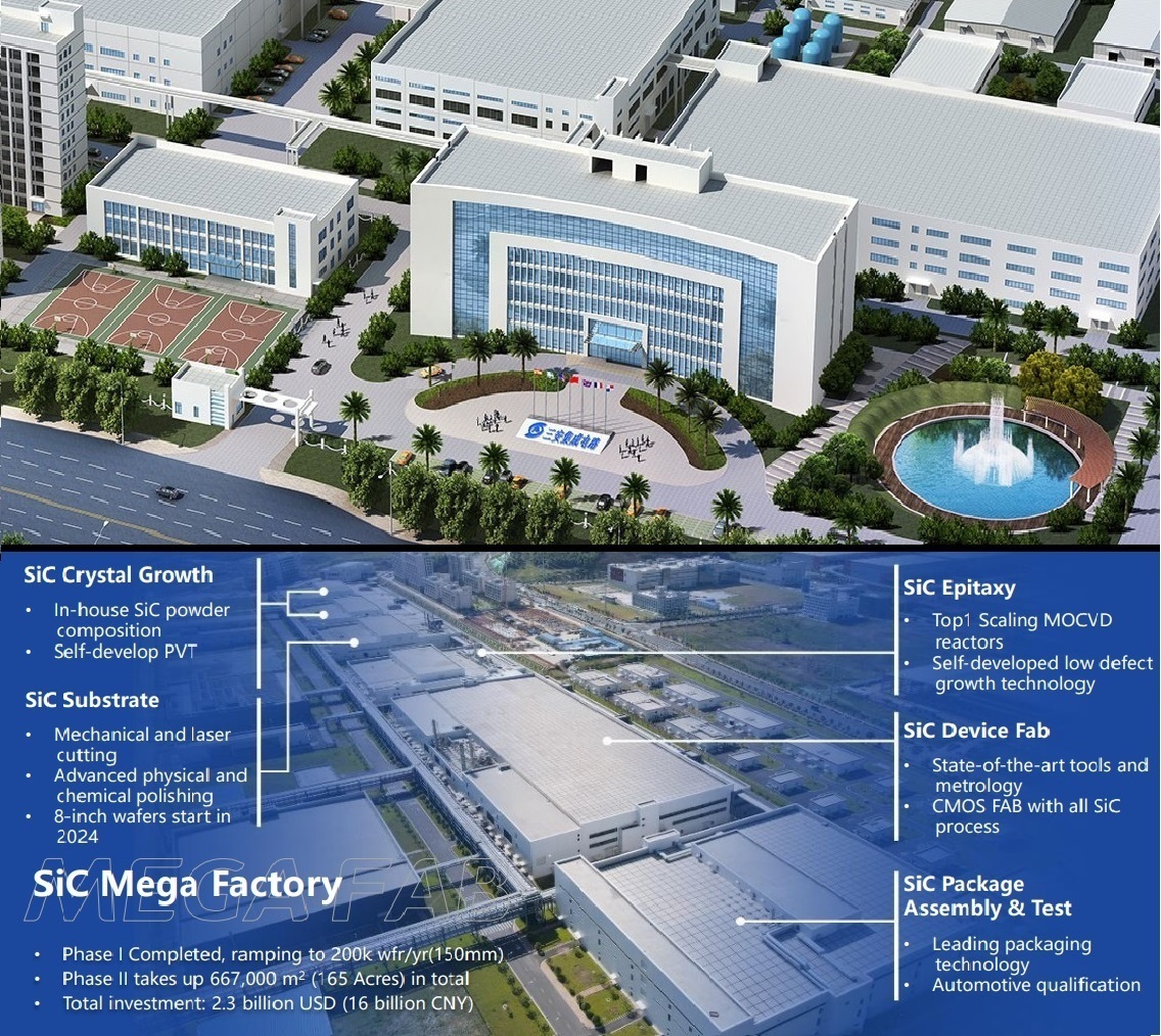 Sanan Semiconductor è una società interamente controllata da Sanan Optoelectronics. La fabbrica è situata nella Changsha Hi-tech Development Zone, copre un'area di 165 ettari, con un investimento totale di 2,3 miliardi di dollari, è impegnata principalmente nella ricerca e sviluppo, progettazione, produzione, vendita e assistenza di semiconduttori a banda larga, i prodotti e i servizi includono SiC MOSFET/SBD, substrato SiC, fonderia di moduli di potenza SiC per il settore Automotive, ecc. Servono più di 800 clienti in tutto il mondo con un totale cumulativo di oltre 300 milioni di chip/dispositivi SiC spediti.